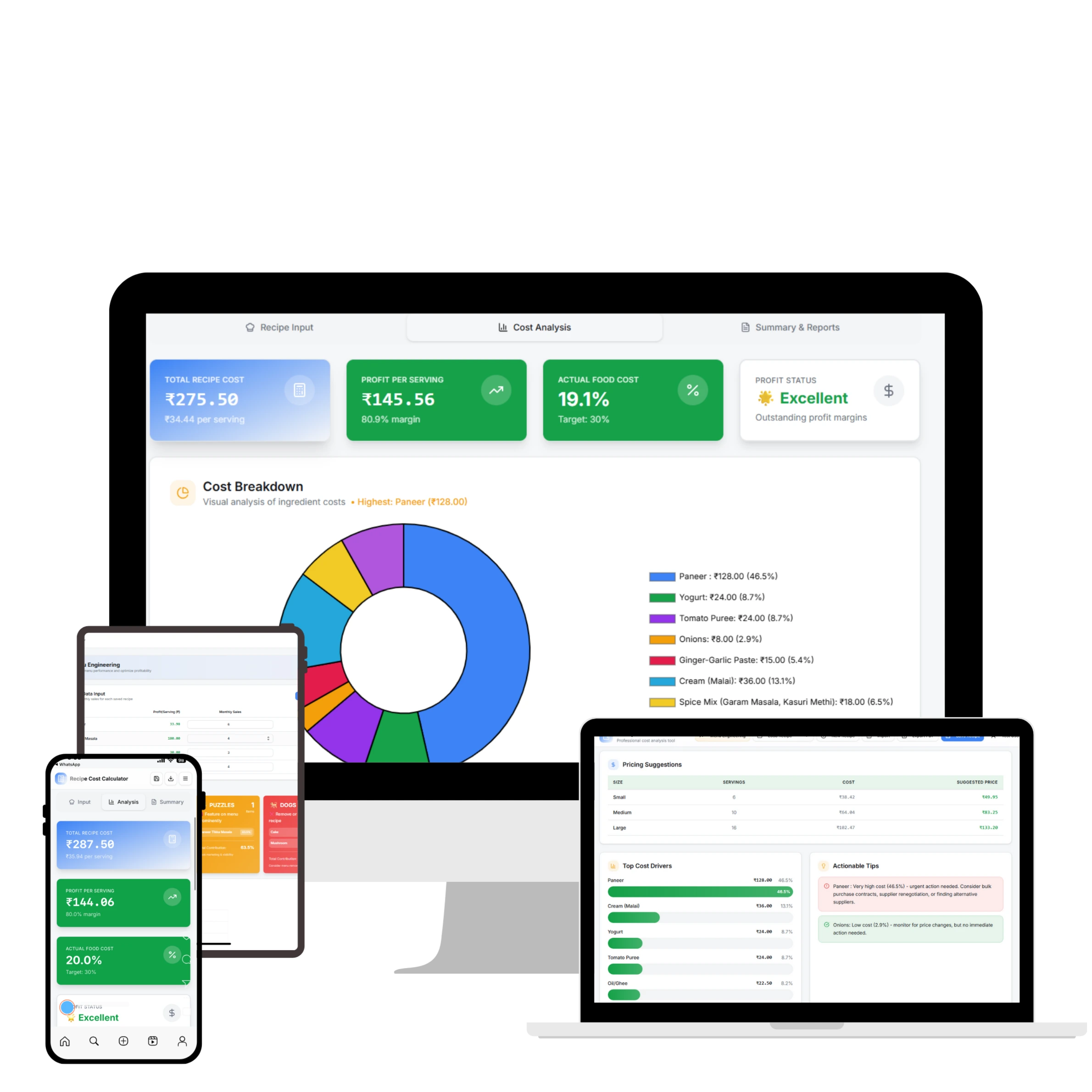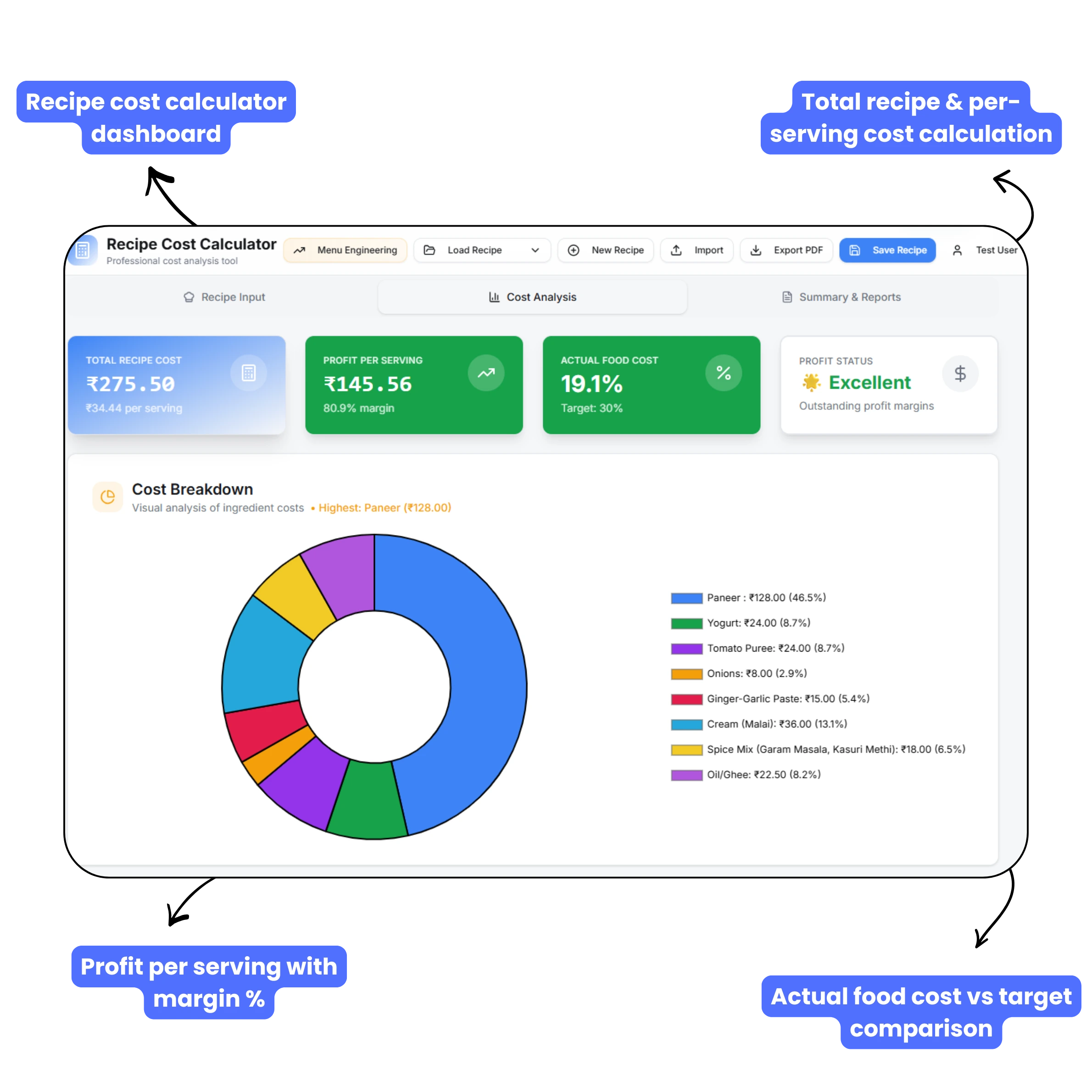 Recipe Calculator is a micro SaaS that helps restaurants, cafés, and cloud kitchens instantly calculate their true recipe cost, ideal selling price, and profit margin per dish. It lets you add ingredients, labor, packaging, and overheads, then shows clear per‑serving and per‑batch costs so you can price confidently and protect your margins